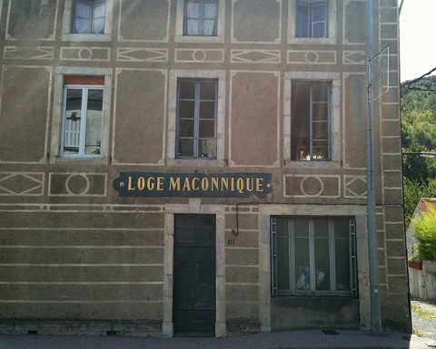 Aix hier : Temple maçonnique rue Vaugelas à Aix les Bains de la fin du XIXème siècle, aujourd"hui hangar d'un magasin de cycles. A noter les volets aux ouvertures triangulaires.